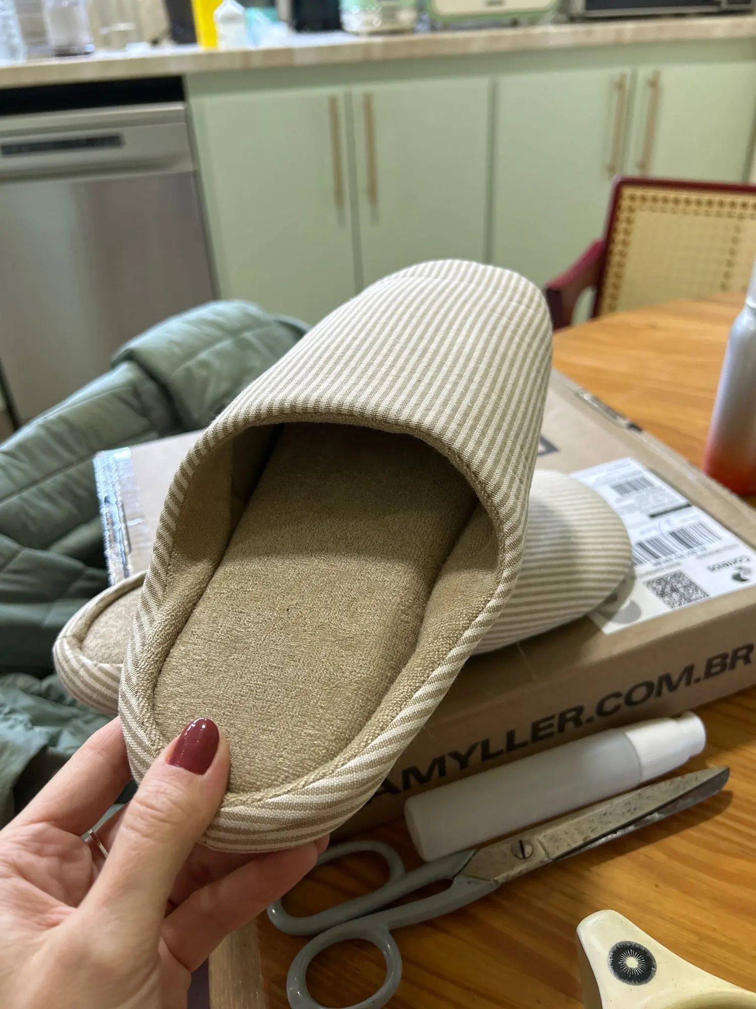 Ce sont des chaussons qui vont droit à l’essentiel : un design raffiné, une matière respirante, et ce petit côté “rayé bien pensé” qui les rend tout simplement irrésistibles.